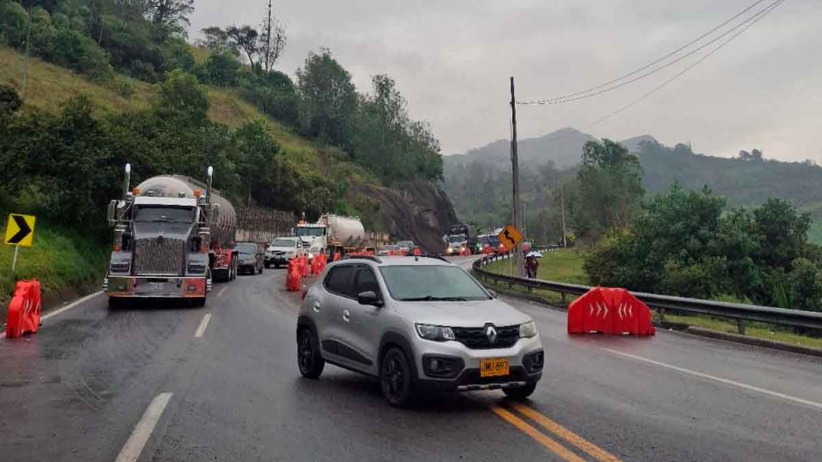 De acuerdo con el concesionario Coviandina y las autoridades de tránsito, el tránsito por la zona se realiza bajo la modalidad “Tipo Semáforo”, con el fin de garantizar la movilidad segura de los vehículos mientras avanzan los trabajos de remoción y estabilización del terreno.